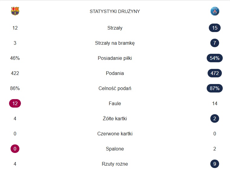 Piłka nożna bywa przewrotna. Jak mawiał klasyk – „Są plusy dodatnie i plusy ujemne„. Barcelona co prawda prowadziła i dominowała, ale na 15 minut przed końcem pierwszej połowy, to Paryżanie zaczęli przejmować inicjatywę. Jak się później okazało – nie oddali jej już do końca.